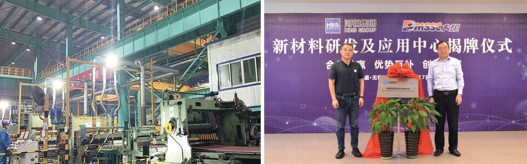 2020年9月,河鋼集團(tuán)與大明集團(tuán)聯(lián)合成立“新材料研發(fā)及應(yīng)用中心”,《熱軋免調(diào)質(zhì)耐磨鋼的推廣及應(yīng)用》已作為研發(fā)中心成立后的頭一個項目展開工作。從2006年起,大明國際從歐美引進(jìn)FIMI、NOVA、VIGANO等世界尖的高強和超高強鋼開平生產(chǎn)線。該系列生產(chǎn)線擁有多個輥包,可以進(jìn)行初、粗、精三個道次聯(lián)動矯直,能夠?qū)η姸仍?300Mpa的產(chǎn)品進(jìn)行在線矯直、開平,充分釋放應(yīng)力。同時,通過對加工過程鋼板表面溫度變化與參數(shù)調(diào)整進(jìn)行有機結(jié)合,終成品率由原先的60%提升到了90%以上,有效解決了免調(diào)質(zhì)耐磨鋼的加工問題。